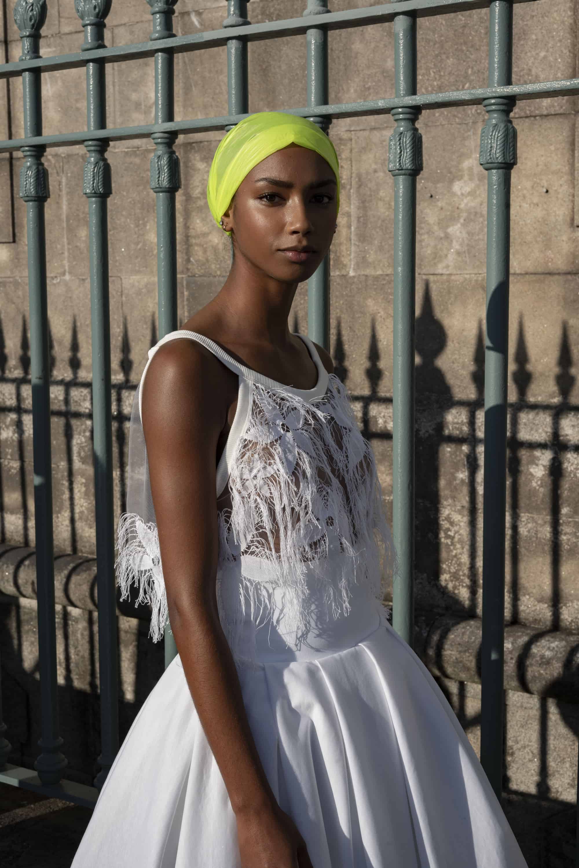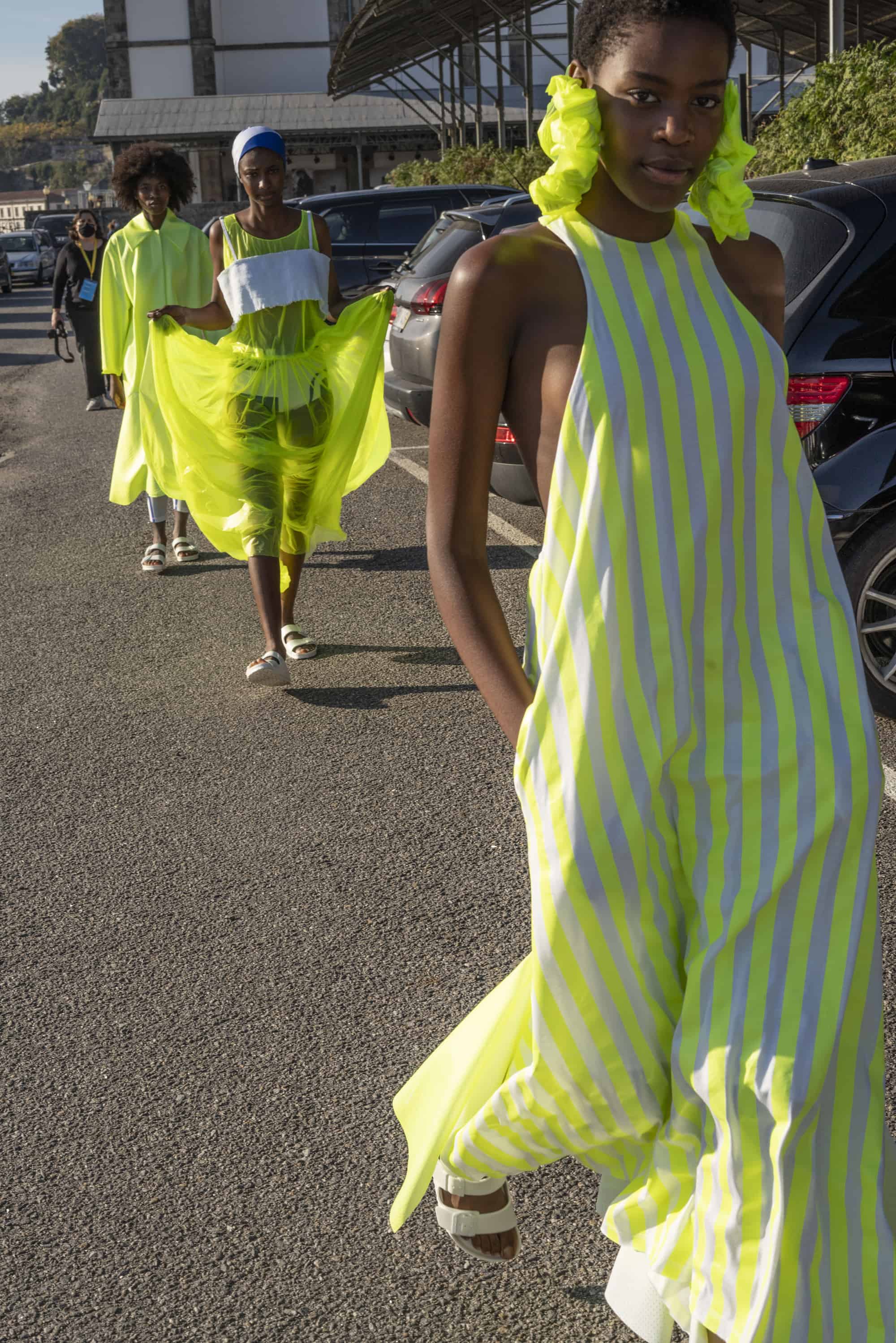 “Para o Verão 21 Maria Gambina apresenta uma coleção feminina em silhueta Space Age num ambiente Afro-americano da década de 60.”