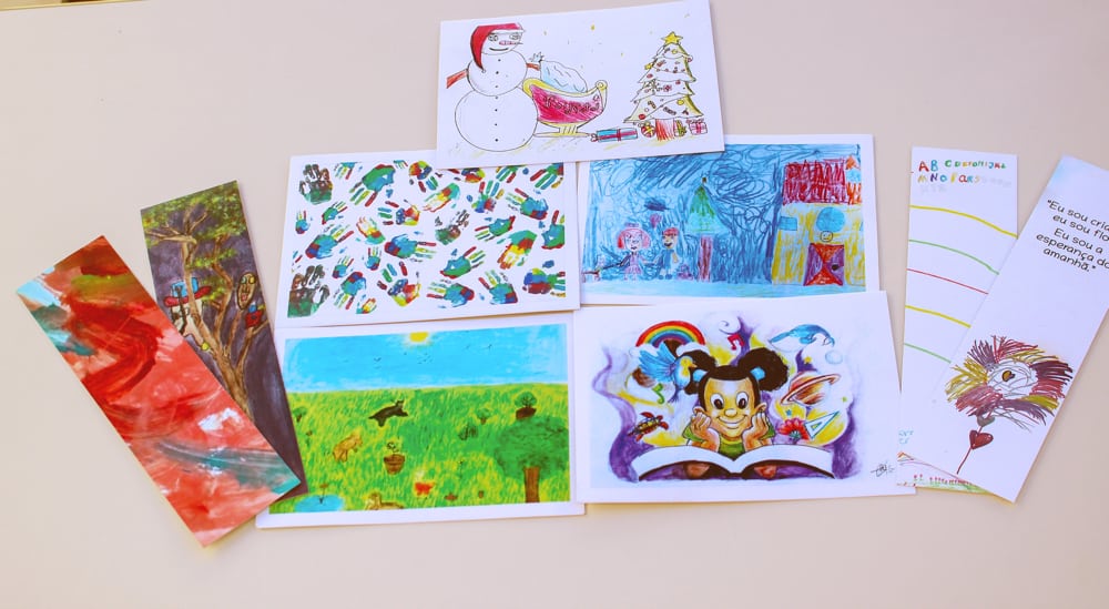 Cartões e marcadores estão disponíveis para individuais e privados, ainda como brinde solidário para casamentos, aniversários e eventos.