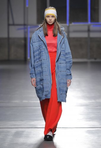 “Fatos de Sky transformam-se em delicados vestidos rodados, em materiais técnicos com referências a peças intemporais, como por exemplo: um corta-vento. Machos tábua remetem-nos para os acolchoados, assim como coloretes evidenciam pormenores básicos do vestuário”, segundo comunicado de imprensa da marca.