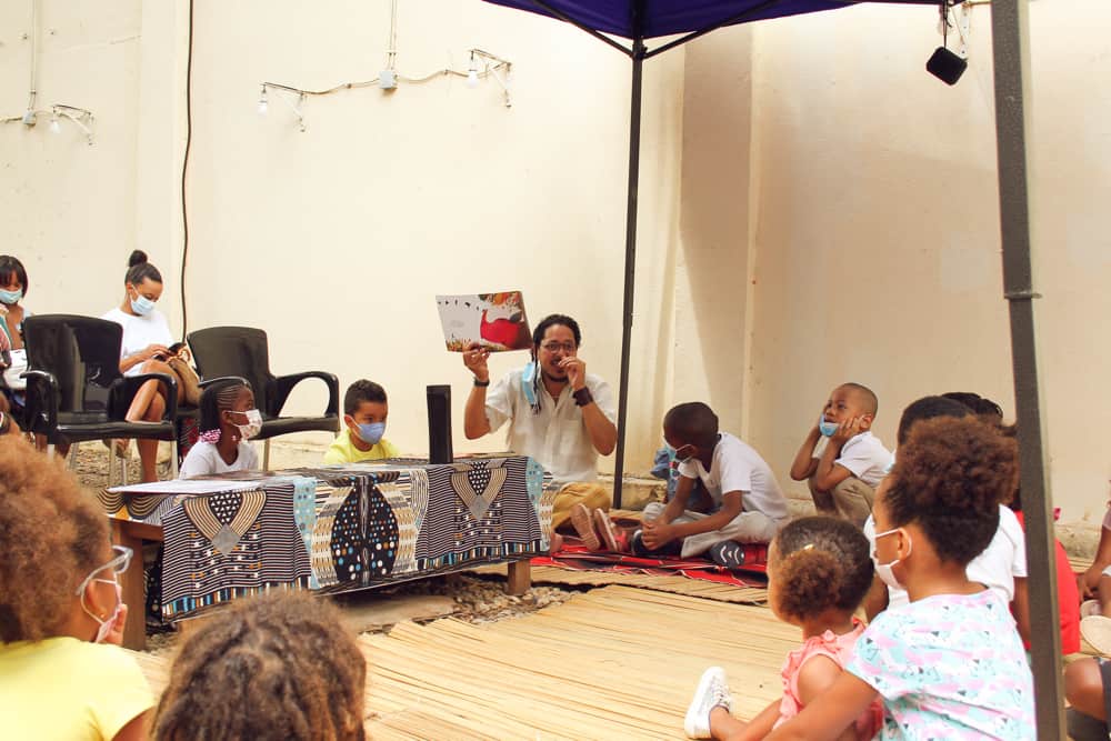 O espaço kandengue é quando a livraria consegue inventar uma programação interessante para os mais pequenos, sendo que muitas vezes tentamos aproximar também os pais, os avós, etc.