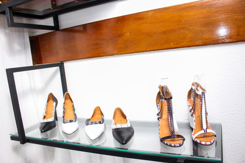 As sandálias também são em pele e muitas inspiradas nas nossas londidi (sandálias feitas com a borracha do pneu).
